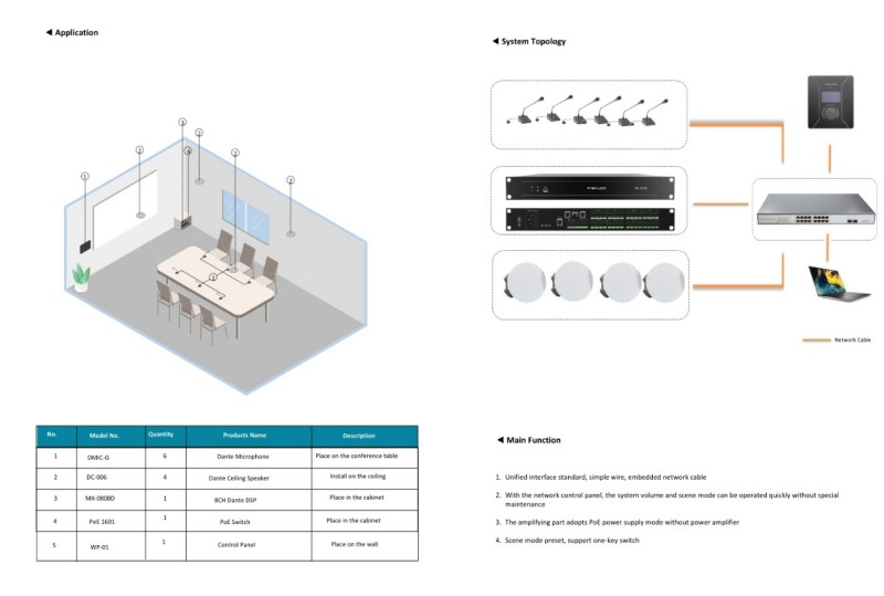 O POE Alimentation Intégration: coopérer avec les commutateurs POE pour réaliser une alimentation à capacité unique + transmission de données de microphones / haut-parleurs Dante (tels que la série Shure MXA).